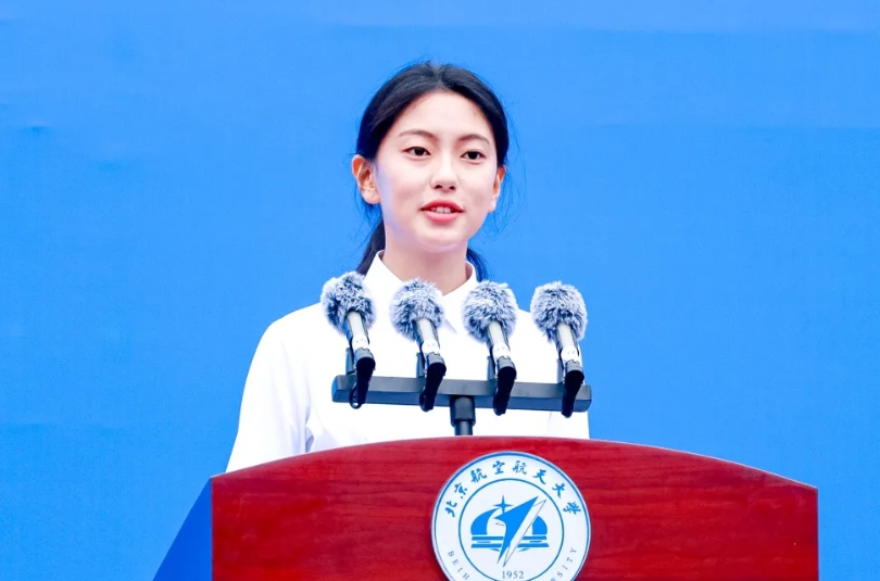来自云南迪庆藏族自治州、就读于空间与环境学院物理强基计划的孙静同学作为本科新生代表发言。孙静讲述了自己从小探索星空追逐苍穹的梦想,以及步履不停圆梦北航的故事,并表示作为一名新北航人要扎实学习基础知识,不断提升科研和实践能力,全面发展综合素养,争取早日成为具备独立从事专业领域研究的高层次人才。