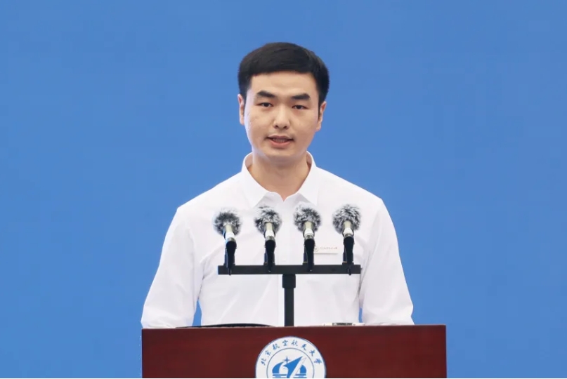 国家卓越工程师学院硕士研究生黄浩宇同学代表全体研究生新生发言。黄浩宇回顾了自己本科期间在北航参与研究项目的经历,并表示作为新时代青年,将在求知与实践中坚定人生航向,锤炼“真本领”、增长“真才干”,以开放的心态学习新知,以坚韧的精神克服险阻,以创新的思维开拓视域,再攀科技新高峰。