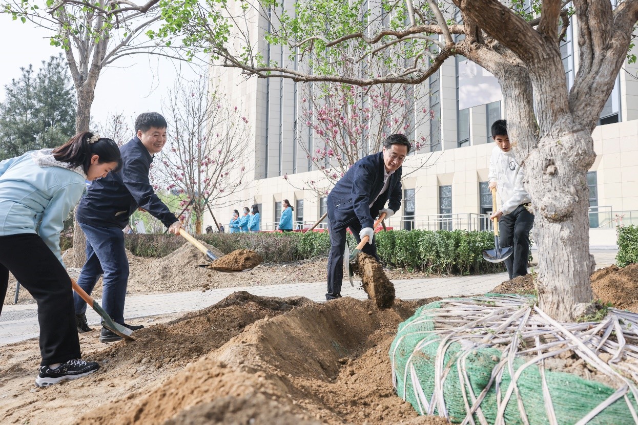 师生同植绿,花香伴馆新。植树现场,校领导与师生代表挥锹培土、扶苗围堰、提水浇灌,合力栽下20余棵优质苗木。新栽苗木错落有致,与周边在建的图书馆相映成景,为沙河校区打造出一道靓丽的生态风景线。