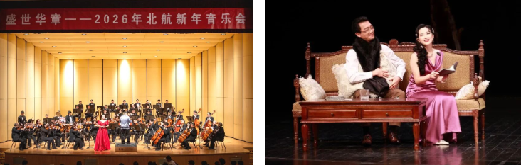 2025年,学校坚持文化育人、以文化人,积极涵育格调高雅、底蕴深厚、气质一流的大学文化。北航大讲堂、美育讲堂、博雅讲堂定期为师生提供学术和思想盛宴。沙河校区航空航天博物馆、艺术馆顺利开馆,新增文化场馆面积19300平米,形成空天特色新地标。校史馆及博物馆接待1800支团队、26万人次参观,成为首都高校热门打卡地。成功举办第五届北航艺术节,北京交响乐团、北京人民艺术剧院等顶尖院团走进校园,引进和举办文艺活动155场。邀请50位国内顶尖艺术家为学校捐赠艺术作品51件。成功组织第八届“感动北航”榜样人物和群体评选。