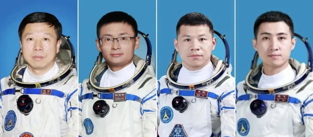 从左到右依次为:神舟九号航天员刘旺、神舟十六号航天员桂海潮、神舟二十号航天员王杰、神舟二十一号航天员武飞