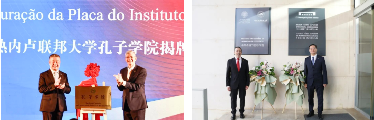 党委书记赵长禄与巴西里约热内卢联邦大学校长罗伯托·梅德罗尼奥为孔子学院揭牌 校长王云鹏与瓦伦西亚理工大学校长卡比亚为中西卓越工程师学院揭牌