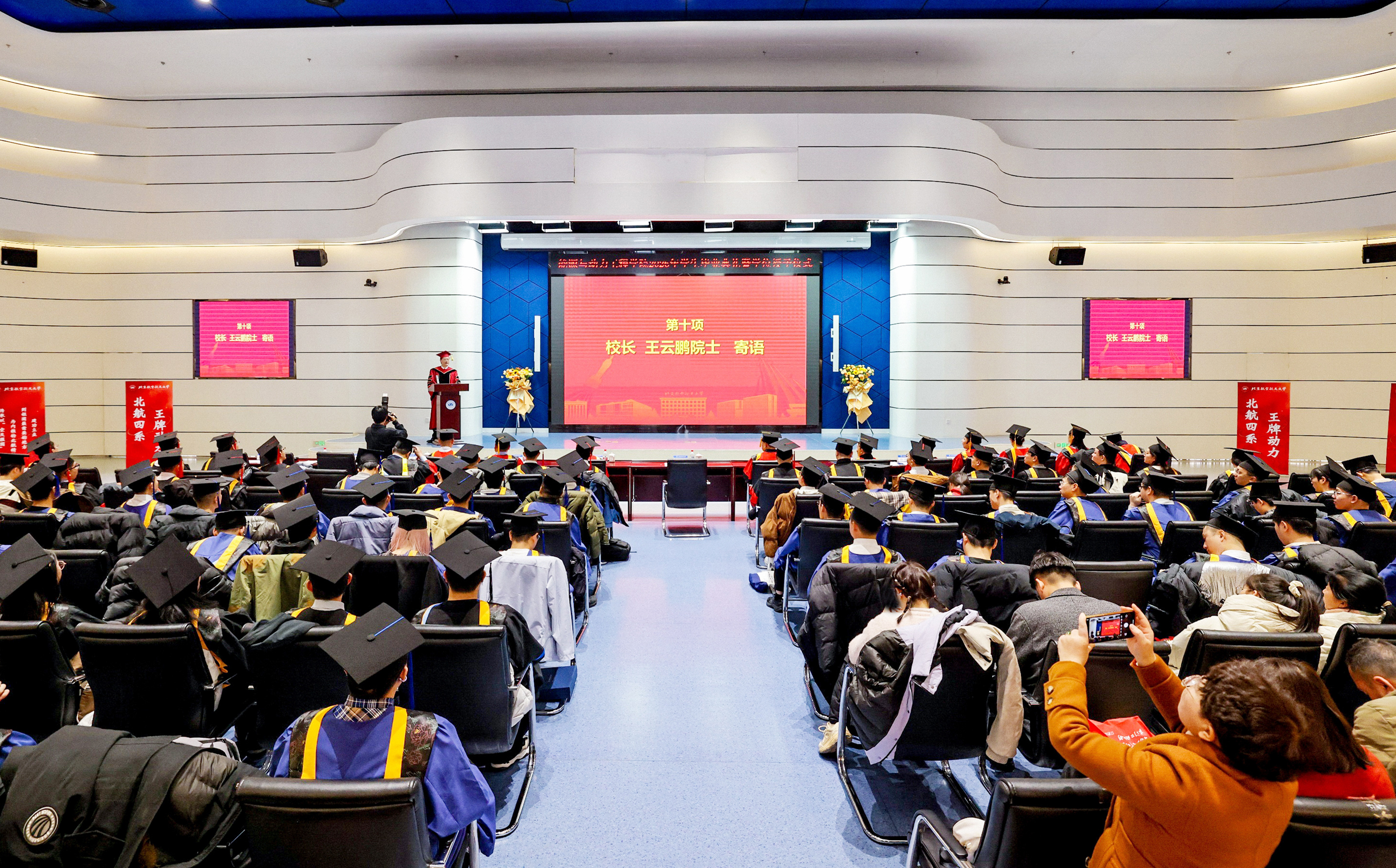 北航新闻网1月13日电(通讯员 张小琳 胡天豪/文 记者 邸白鹭/摄影)新年伊始,万象更新。1688名北航研究生毕业生即将走出校门,开启全新的人生旅途。日前,校长王云鹏,副校长赵巍胜、邓怡、吴江浩参加相关学院春季研究生毕业典礼,为毕业生们拨穗正冠、授予学位,并与毕业生代表座谈交流。
