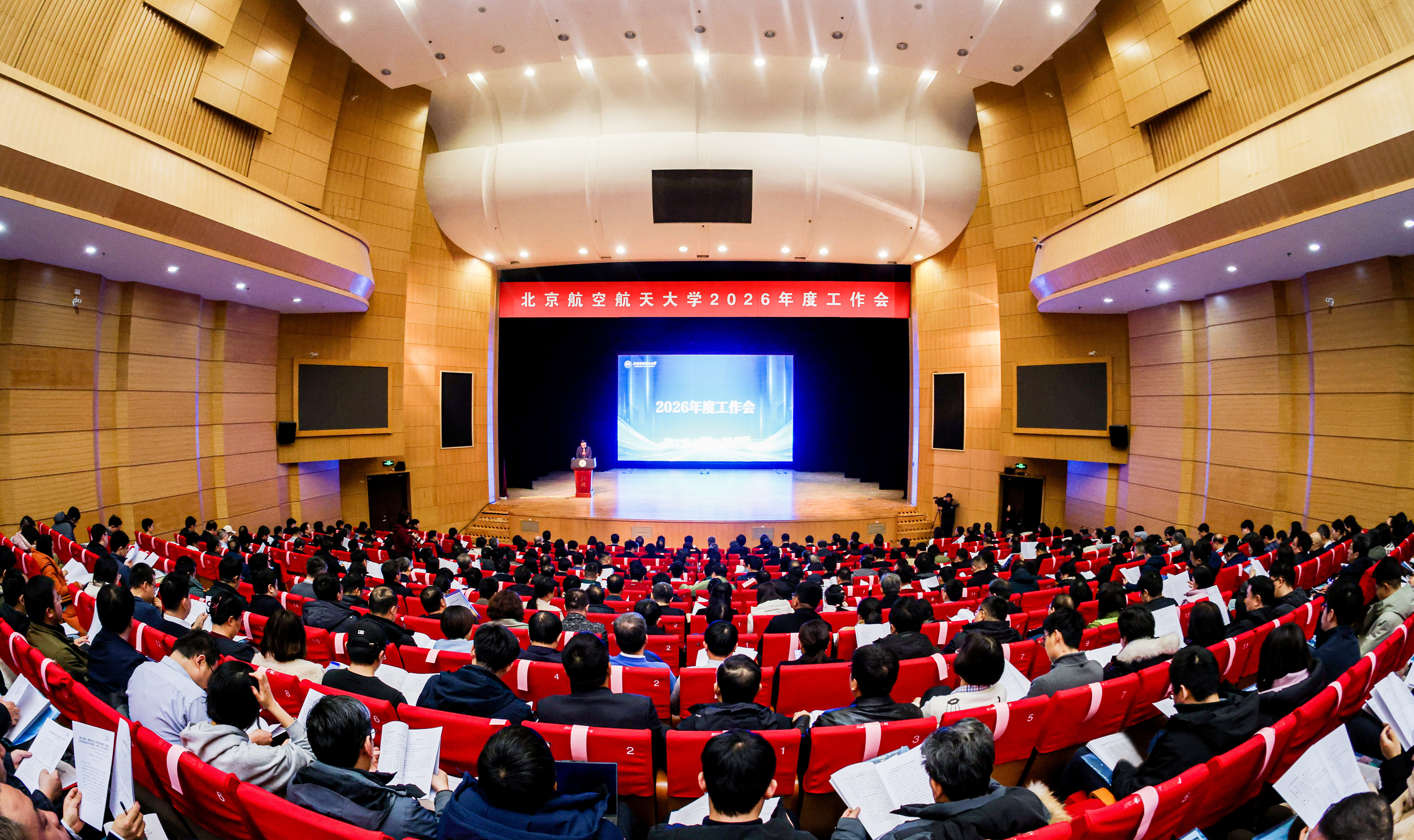 北航新闻网3月2日电(记者 王晴 任和/文 邸白鹭/摄影)3月2日,北京航空航天大学召开2026年度工作会。会议主题为以习近平新时代中国特色社会主义思想为指导,全面贯彻党的二十大和二十届二中、三中、四中全会精神,深入落实立德树人根本任务,坚持教育科技人才一体推进,锚定世界一流目标,团结动员全校师生员工向新向上、聚力攻坚、改革创新、真抓实干,高质量开启“十五五”新征程,加快建设中国特色、世界一流大学。