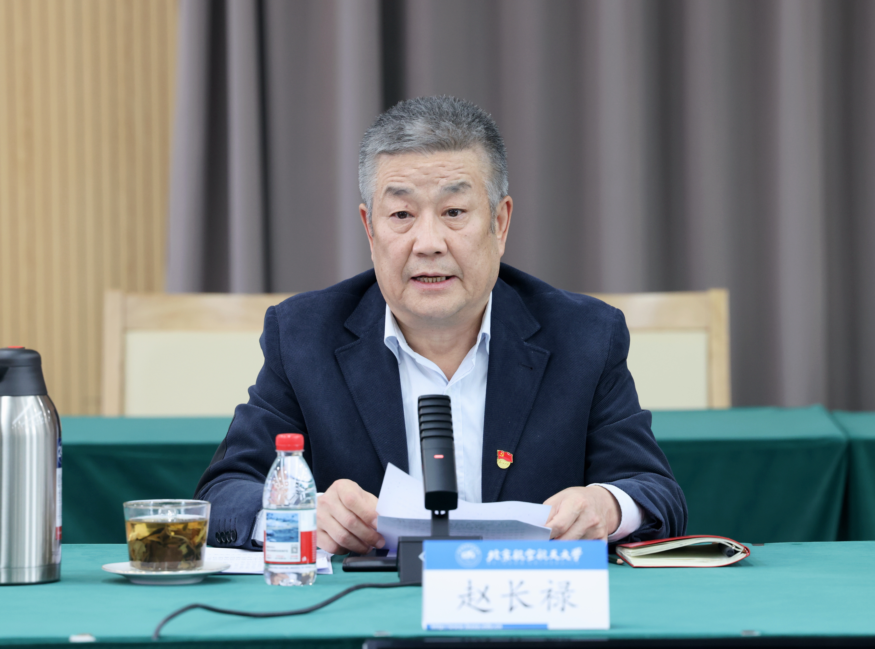 北航新闻网3月13日电(记者 张大伟/文 任和 尚涌琪 郭子莹/摄影)3月13日下午,我校召开党委理论学习中心组(扩大)学习会和树立和践行正确政绩观学习教育校领导班子读书班开班学习会,深入学习贯彻习近平总书记在全国两会期间的重要讲话精神和全国两会精神,认真学习领会习近平总书记关于树立和践行正确政绩观的重要论述,以笃行实干推动“十五五”开好局、起好步,加快建设中国特色、世界一流大学。会议在沙河校区八号楼1301会议室和学院路校区如心会议中心中报告厅同步召开。全国政协委员、校党委书记赵长禄主持会议。